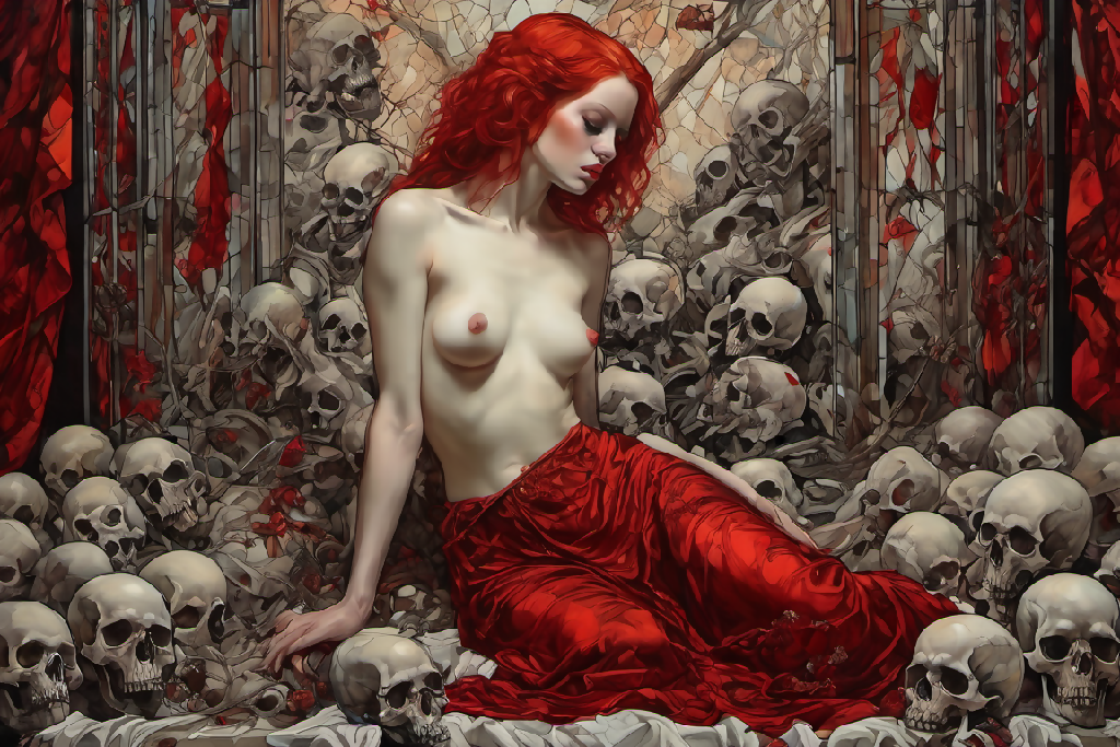 The ossuary, the sadness of a woman waking from her sleep to a harsh reality. Death surrounds her, yet she does not possess the fear of a victim, only a feeling perhaps forged by routine.