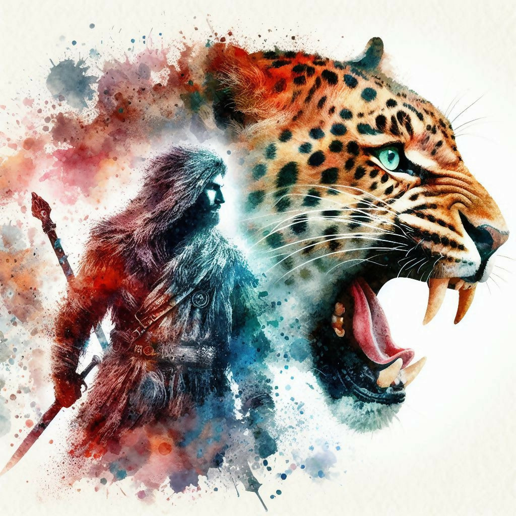 This striking piece portrays the seamless fusion of human strength and animal instinct, symbolizing courage, resilience, and the untamed energy within. The vivid details capture the intensity of the leopard's roar and the warrior's focused expression, creating a dynamic and electrifying composition. Perfect for those who seek bold, inspirational decor, this artwork serves as a powerful reminder to embrace your inner strength and conquer life’s challenges with confidence and grace.