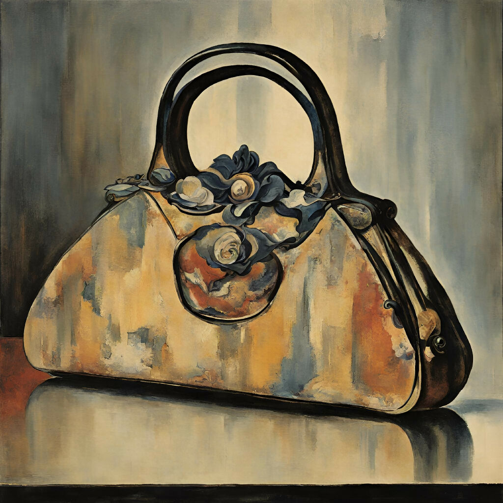 The Purse is a beautiful, feminine, AI painting of a purse that would suits any interior glam room decoration.