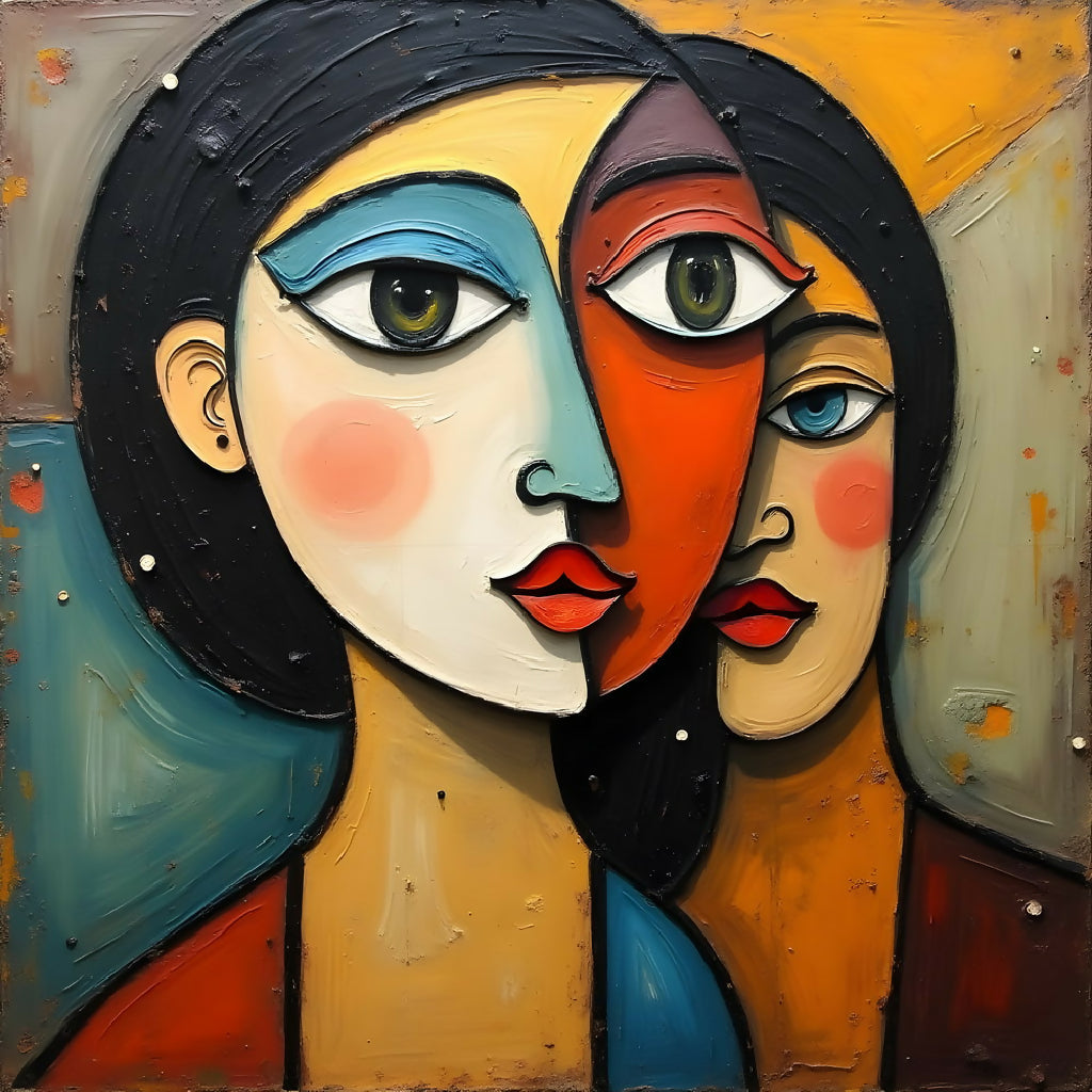 This painting showcases a Cubist-inspired portrait of a woman, featuring fragmented forms and multiple viewpoints in earthy tones, with bold brushstrokes reminiscent of early 20th-century avant-garde art.