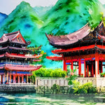 The "Twin Palace" watercolor painting is a beautiful and captivating piece of art that would add a touch of elegance and sophistication to any home or office wall decoration.