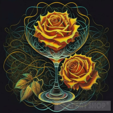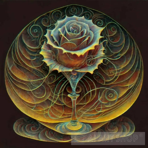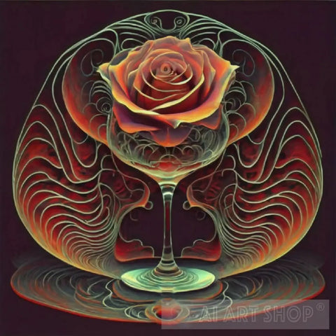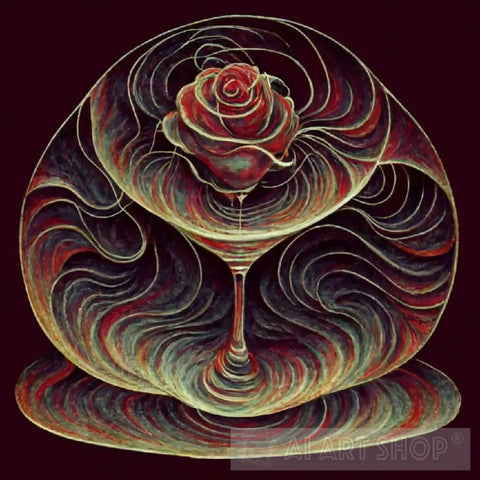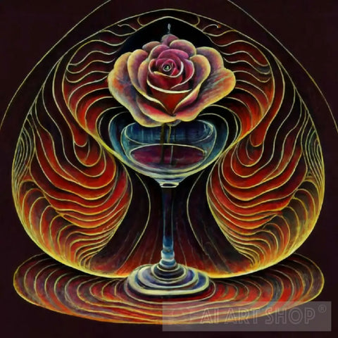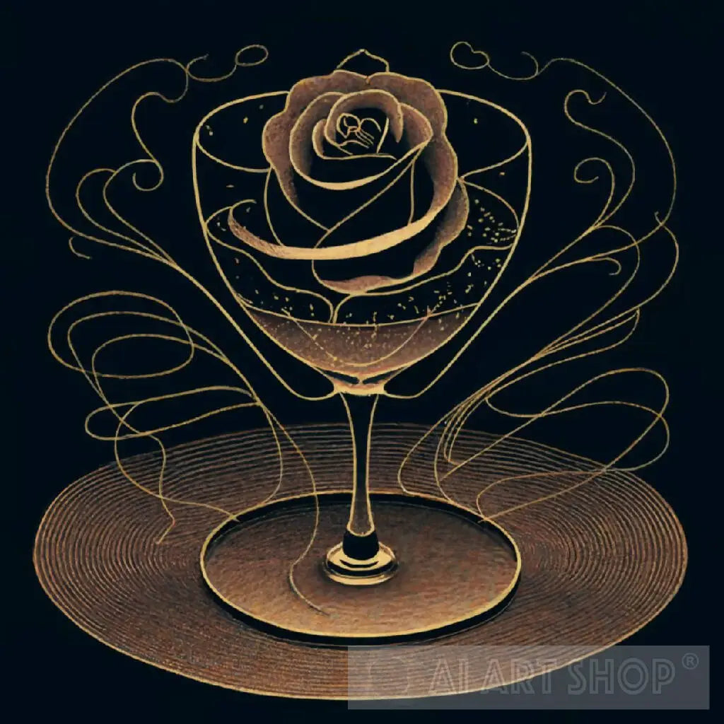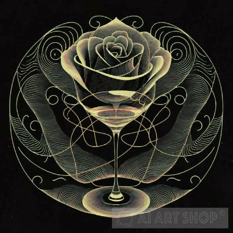 Thin lines in pen and ink, forming the circumference of a cup of water and a rose. .