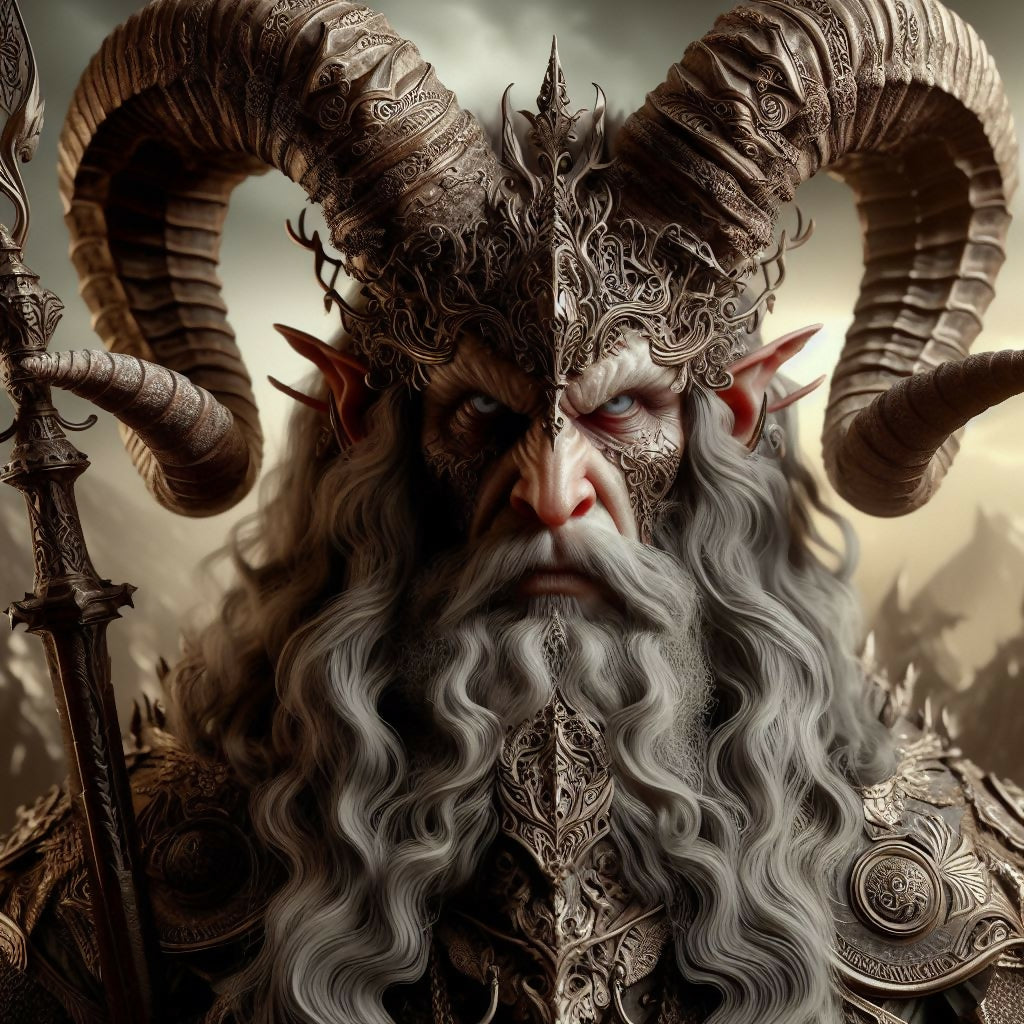 Tags: celtic, horned figure, staff, skulls, gothic, fantasy, forest guardian, ornamental, tribal, mythology, beard, ritual, ancestral, mystical, dark art, nature spirit, shaman, warden, symbolic.