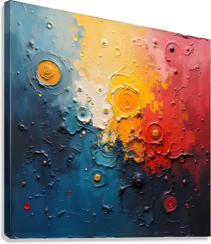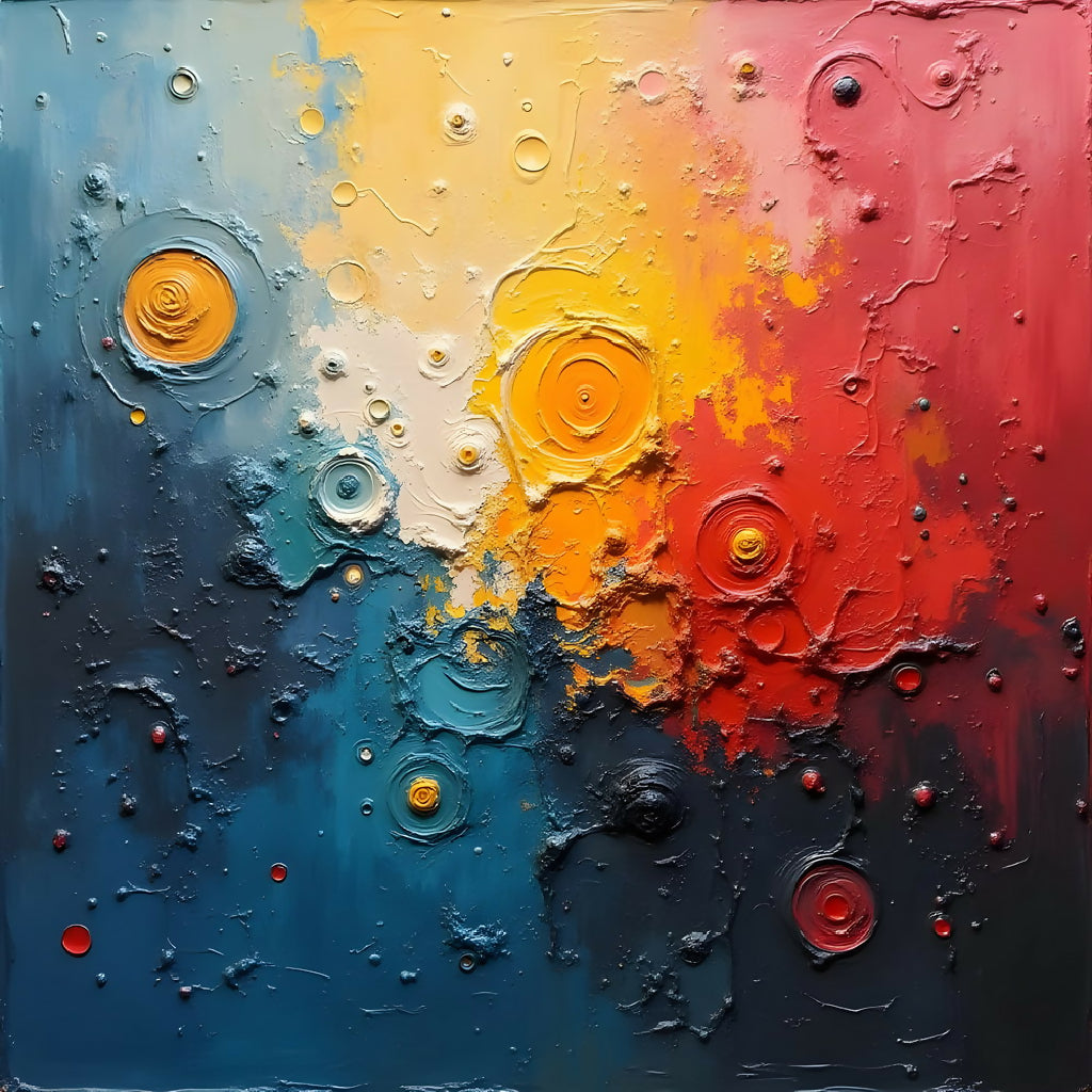 This image is a dynamic oil painting characterized by bold colors with rich texture, expressive aesthetic reminiscent of Cubist art.