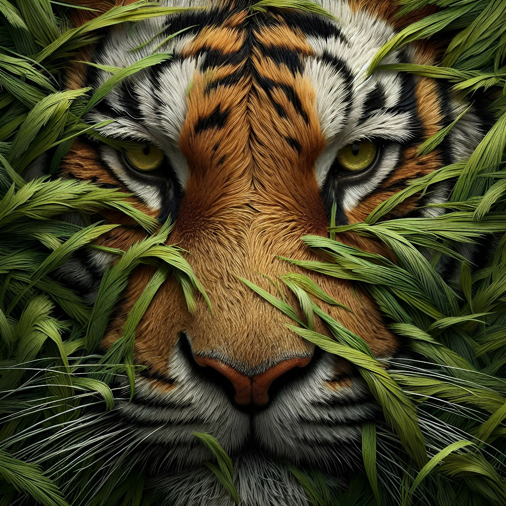 Tiger in forest is created to illustrate the noble, fearless and courageous nature of tiger with an explicit detail in the texture of its furry skin, making the art looks realistic.
