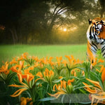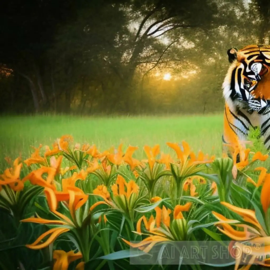 This girl is known as Tiger Lily. She is enjoying herself in the morning sun in a field of Tiger Lilies.