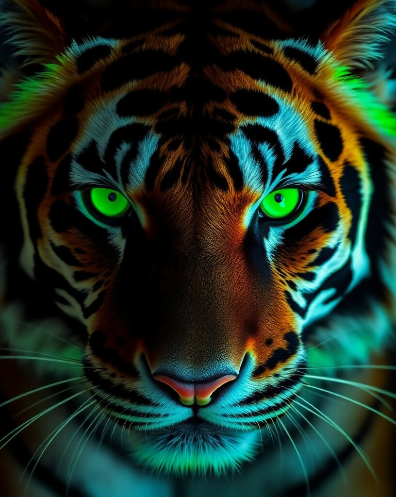 Green eyed tiger vibrant neon
