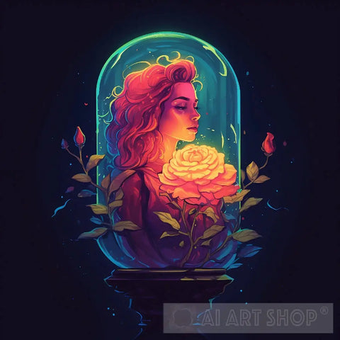 In this Art a woman is trapped behind a glass shield, her beauty and spirit imprisoned. The glass symbolizes the barriers we face on our journey, hindering our true essence from shining through. A delicate rose resting upon the glass serves as a reminder of the fragility and resilience of the human soul, urging us to contemplate the quest for spiritual liberation and the strength required to break free.
