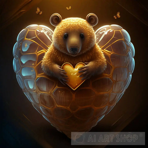 Il s’agit d’une image créée par une intelligence artificielle qui représente un ourson dans un cœur rempli de miel. L’image met en valeur la relation entre l’animal et le miel, qui est un aliment connu pour être apprécié par les ours. Il peut symboliser la gourmandise, la tendresse ou encore l’affection. Cette image peut également représenter l’idée d’une relation harmonieuse entre l’animal et son environnement ou encore suggérer une idée de nature sauvage et pure.