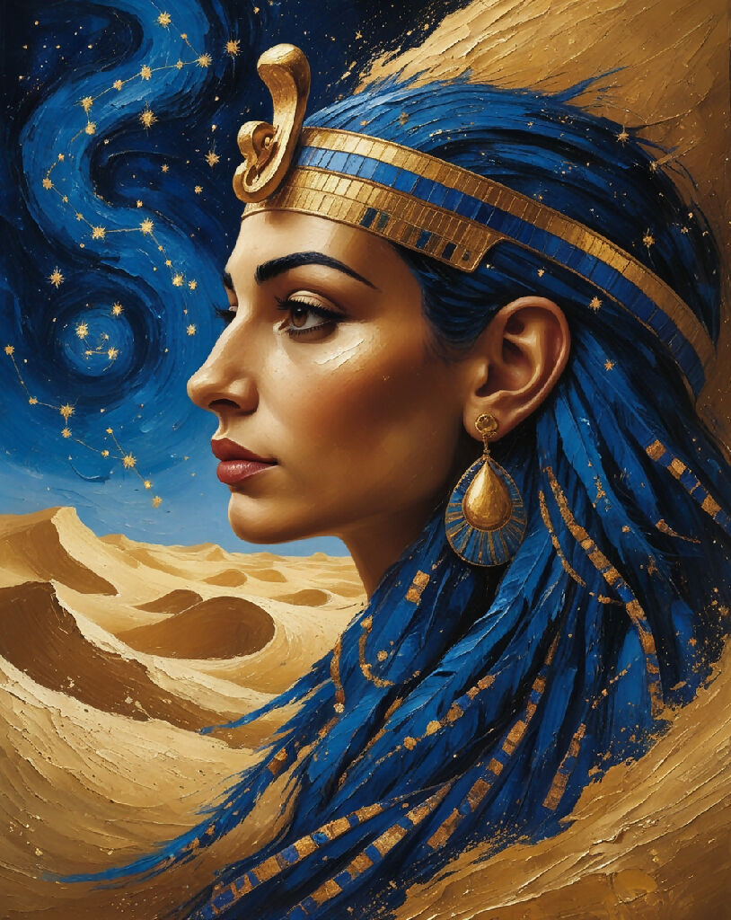 Van Gogh-Inspired Cleopatra Art Print - Egyptian Starry Night Canvas