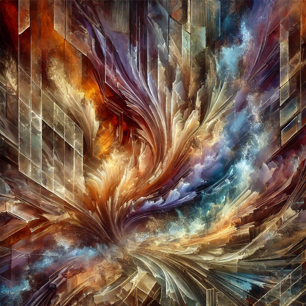 Veil of Echoes" is a captivating work of abstract expressionism, drawing the viewer into a profound exploration of the emotional and the ethereal. This masterpiece presents a surreal interplay of shadow and light, with layers of translucent hues that ripple like sound waves, evoking a sense of movement and depth. Rich, earthy tones of umber and gold seamlessly merge with bursts of sapphire and crimson, symbolizing the collision of inner strength and vulnerability.