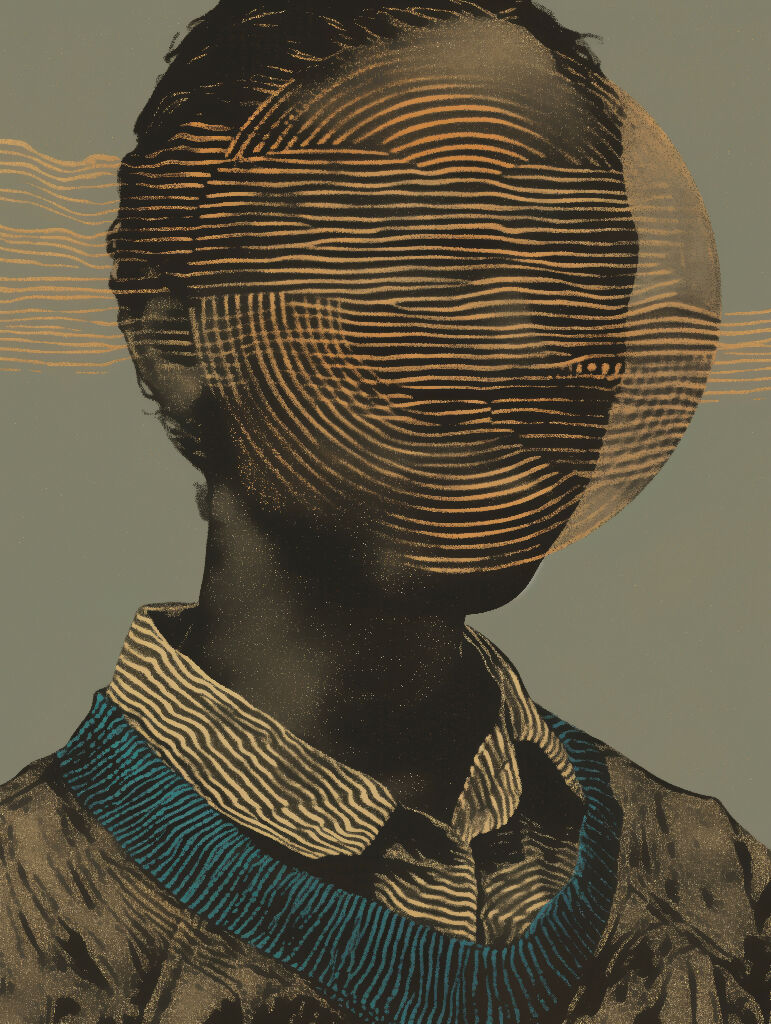 Keywords: abstract portrait, AI artwork, human emotion, expressive face, surreal portrait, modern wall art, digital painting, intimate artwork.