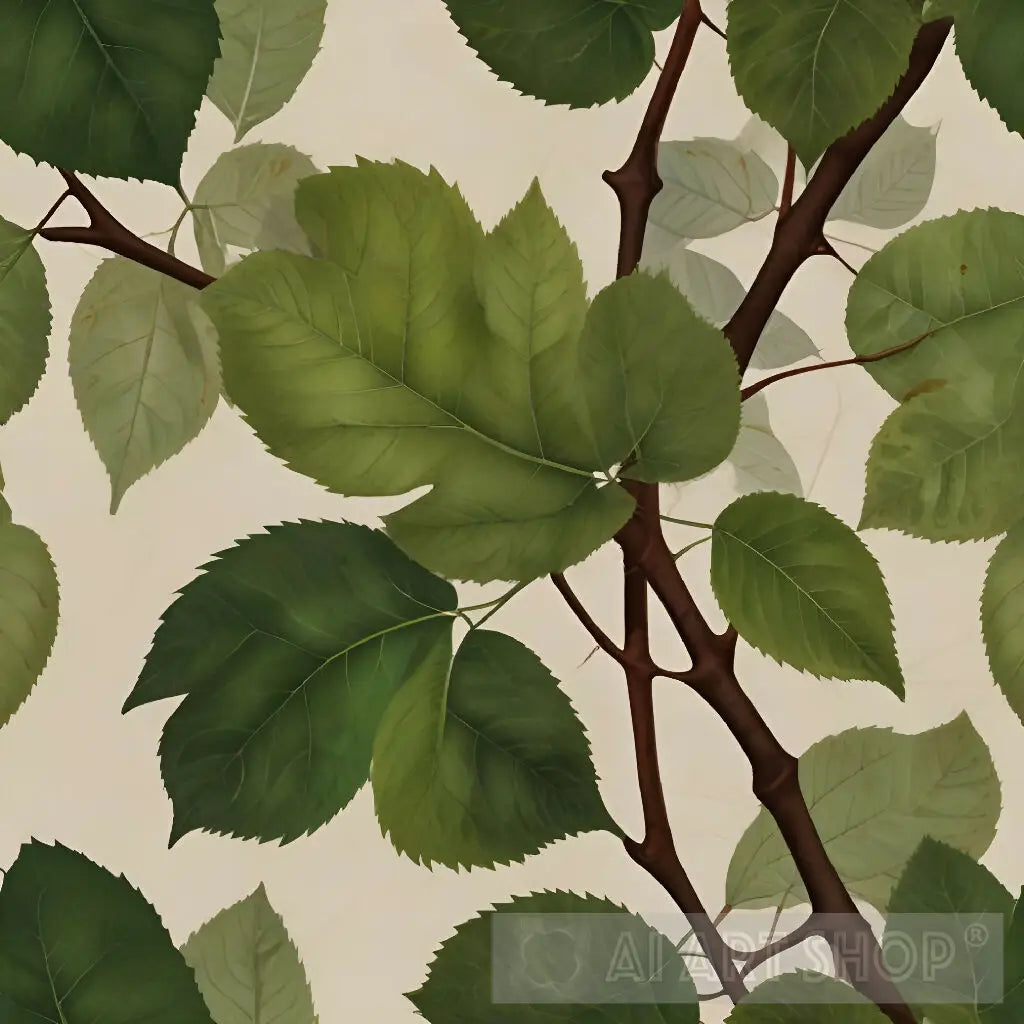This seamless pattern features a lush arrangement of verdant leaves and winding branches. The intricate design creates a sense of continuity, making it perfect for fabrics, wallpapers, and other applications requiring a repeating motif.