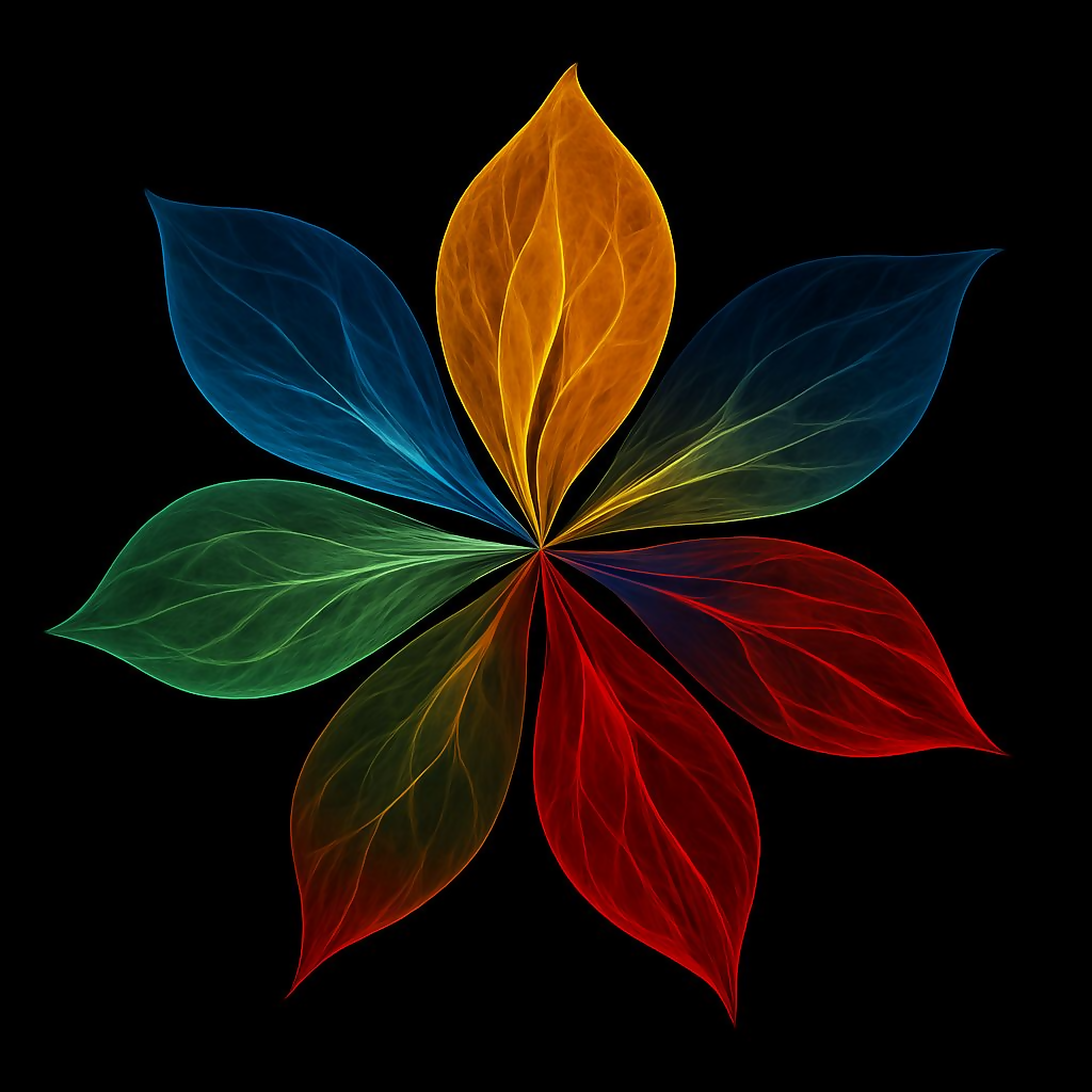 Infuse your space with vibrant energy and harmony with our captivating Rainbow Leaves Abstract Flower Digital Art Print. This stunning high-resolution artwork is an instant digital download, perfect for adding a modern, colorful, and visually uplifting focal point to any room. Our unique design features a radiant, abstract floral shape composed of translucent, glowing petals in a beautiful spectrum of rainbow colors – including red, orange, yellow, green, blue, and purple – against a striking deep black background.
