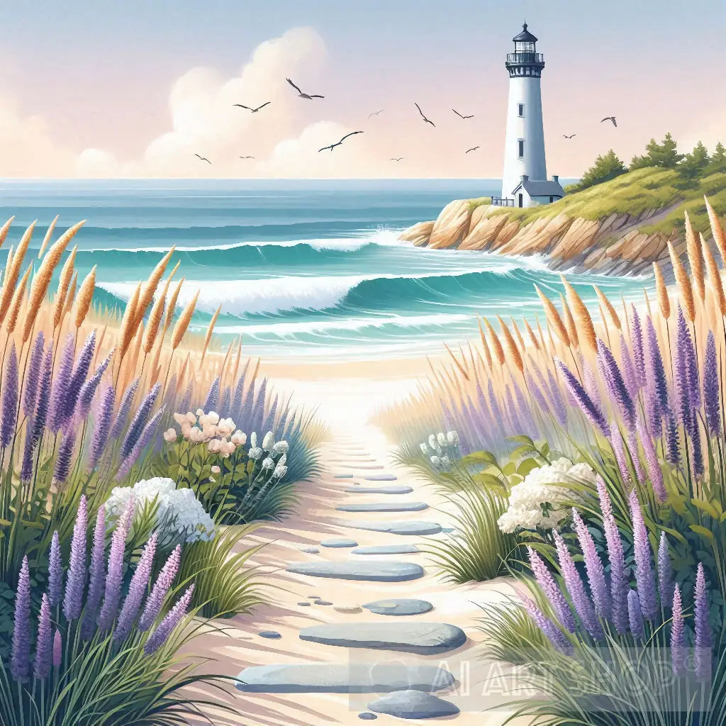 Beautiful view of a sandy footpath that leads to white sandy beach. With fresh coastal colors brings peace to the eyes.