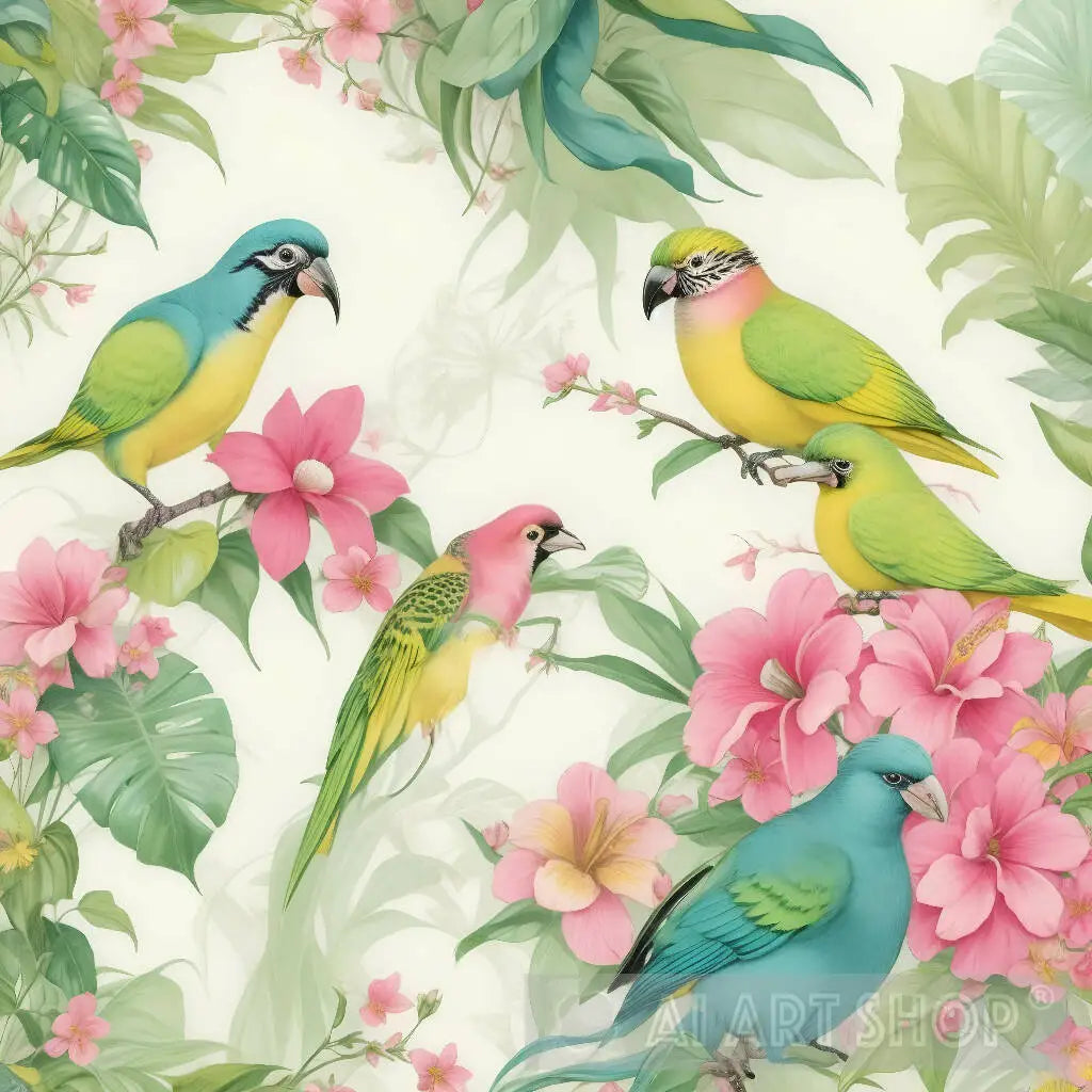 Vintage Pastel Tropical And Exotic Birds Botanical Flower Garden