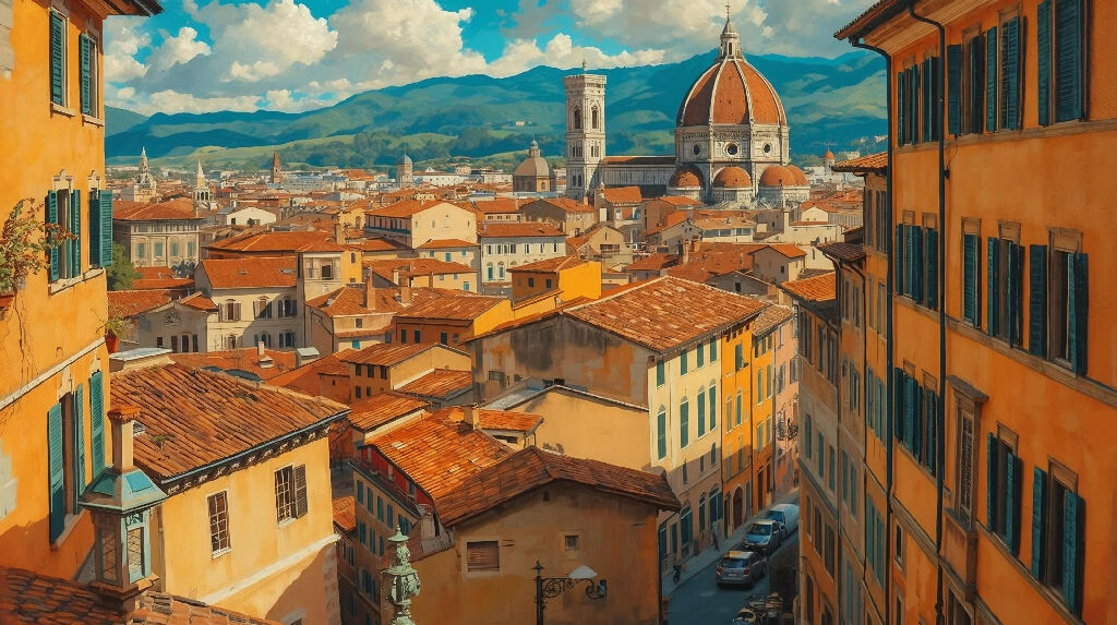 Captivating painting capturing the beauty of Florence with vivid colors and old-world architecture.