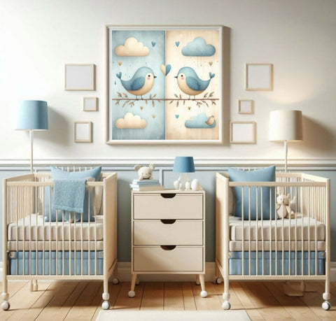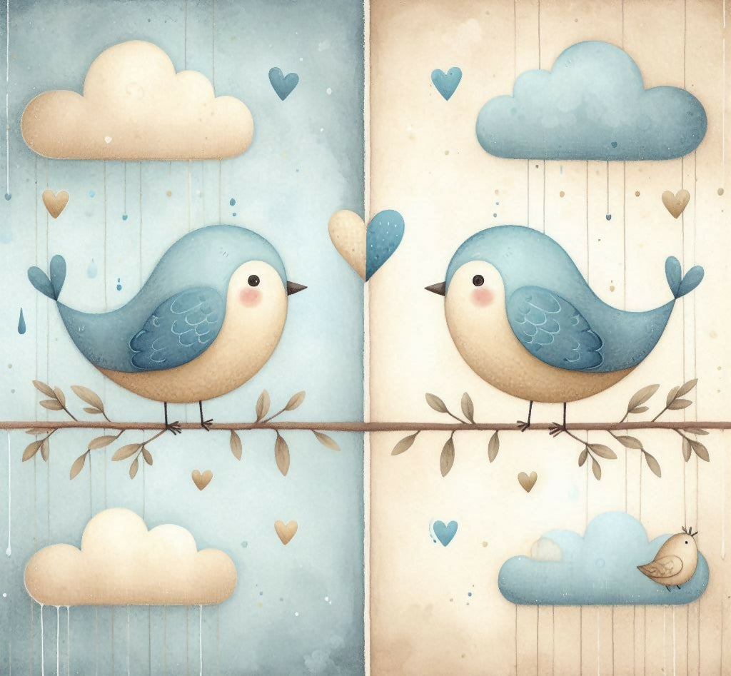 Zwei Vögel auf einem Ast sitzen sich gegenüber.