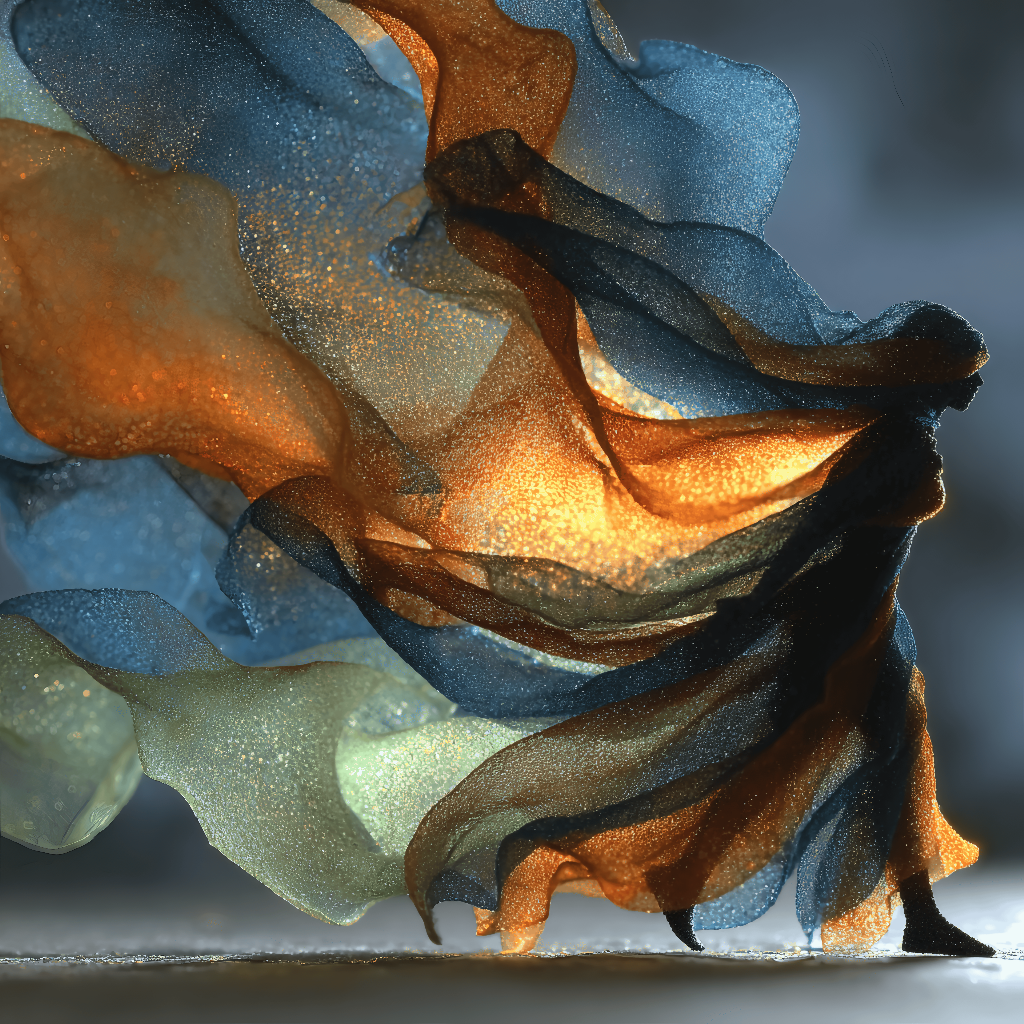 Tags: ai generated art, surrealism ai art, flowing veils, ember silk, ocean tones, luminous figure, mystical dance, glowing fabrics, fantasy silhouette, textured motion, lumenforge