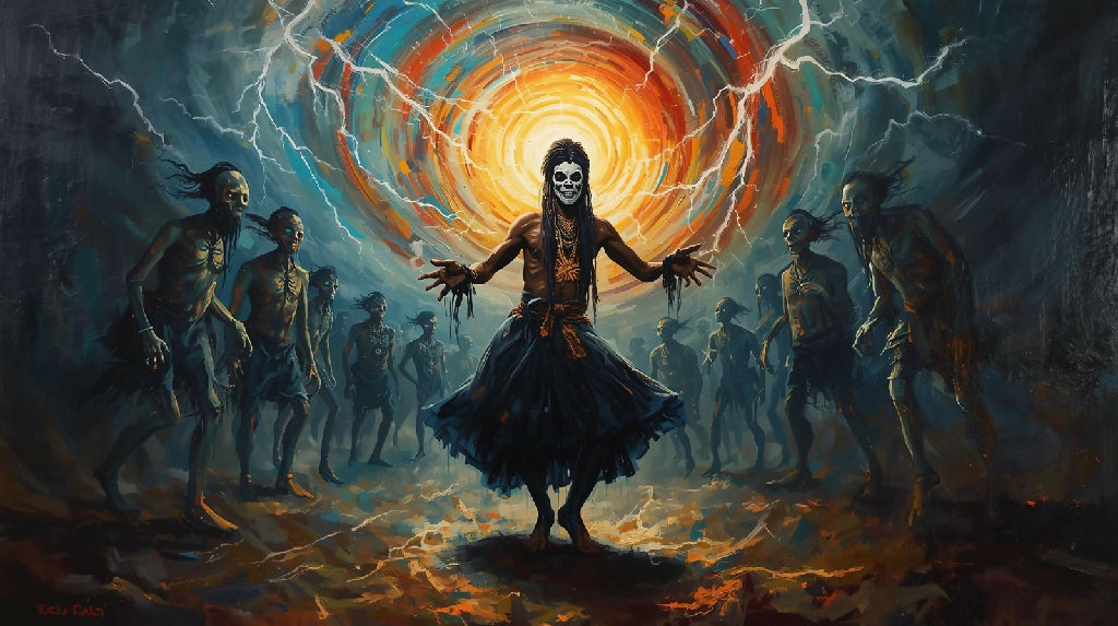 Creepy Surreal painting of a Voodoo Priest performing a ceremony while being surrounded by the undead.