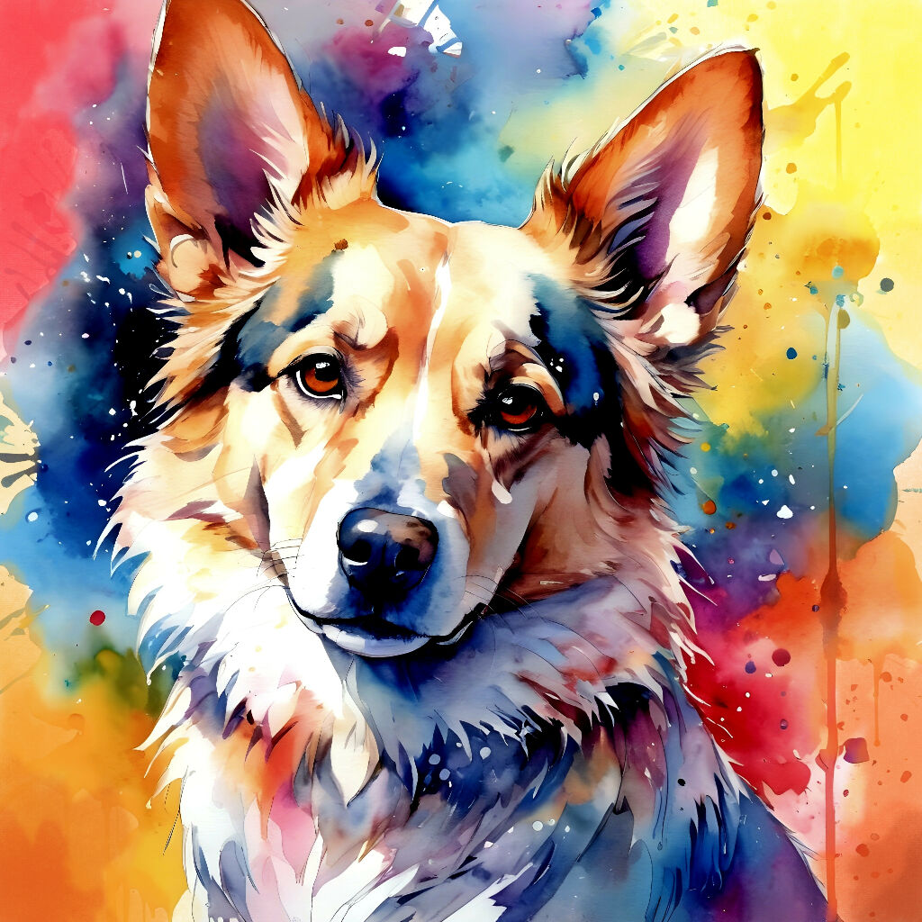 AI watercolor art work of the dog.
