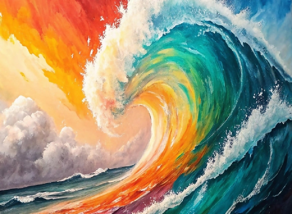Immerse yourself in the captivating beauty of "Wave of Vibrance," a breathtaking fusion of fiery warmth and oceanic coolness. This stunning color painting portrays the powerful harmony between fire and water, blending vivid shades of red, orange, and blue into a dynamic masterpiece. The swirling wave symbolizes balance, energy, and nature's raw strength, making it a perfect centerpiece for any room. Transform your space with this vibrant artwork that evokes both serenity and passion.