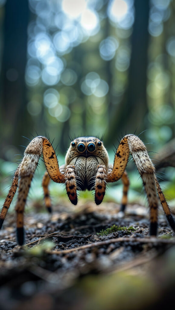 Enter the enchanting depths of the forest with this mesmerizing AI-generated artwork featuring a striking spider weaving its delicate web among the towering trees. This masterpiece captures the intricate beauty of nature’s tiny architect, highlighting the fine details of its patterned body, delicate legs, and the shimmering silk of its web against the lush, green backdrop of the wild.
