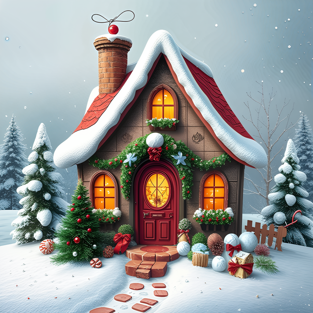 Add a sprinkle of festive magic with this Whimsical Christmas Cottage. Featuring a charming snow-covered cottage with glowing windows, twinkling lights, and a starry night sky.