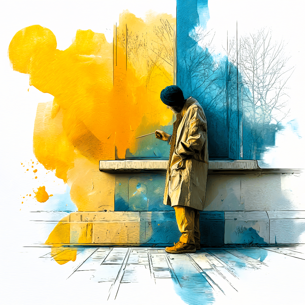 Tags: ai generated art,portrait ai art,whispers of creation,the painter of silent worlds,artist painting wall,golden coat,blue turban,winter trees,explosive brushstrokes,creation process,textured canvas,cinematic lighting,highly detailed,high resolution,emotional surreal,lumenforge art