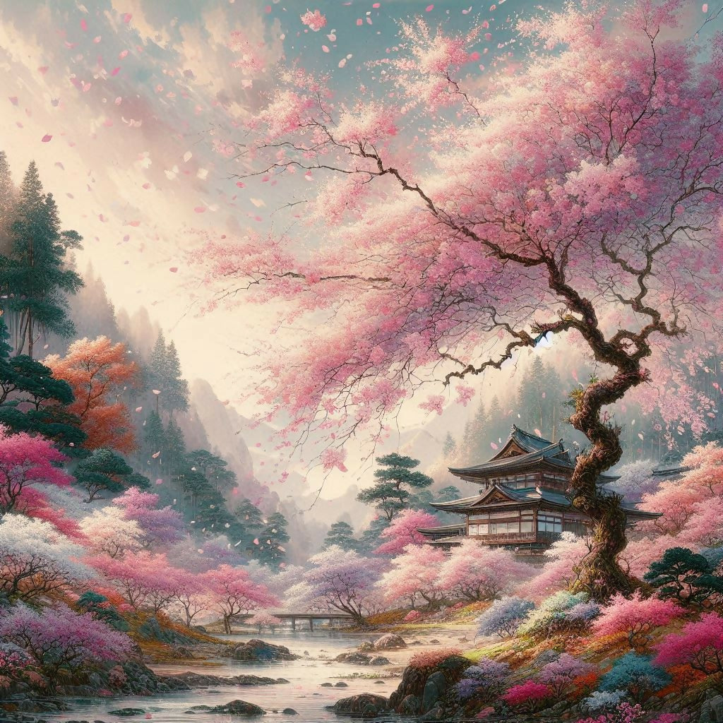 The ethereal quality of the cherry blossoms, coupled with the peaceful, contemplative atmosphere, creates a sense of tranquility and mindfulness. Whispers of Ikigai is more than just a painting; it’s an invitation to embrace life's journey with grace and purpose.