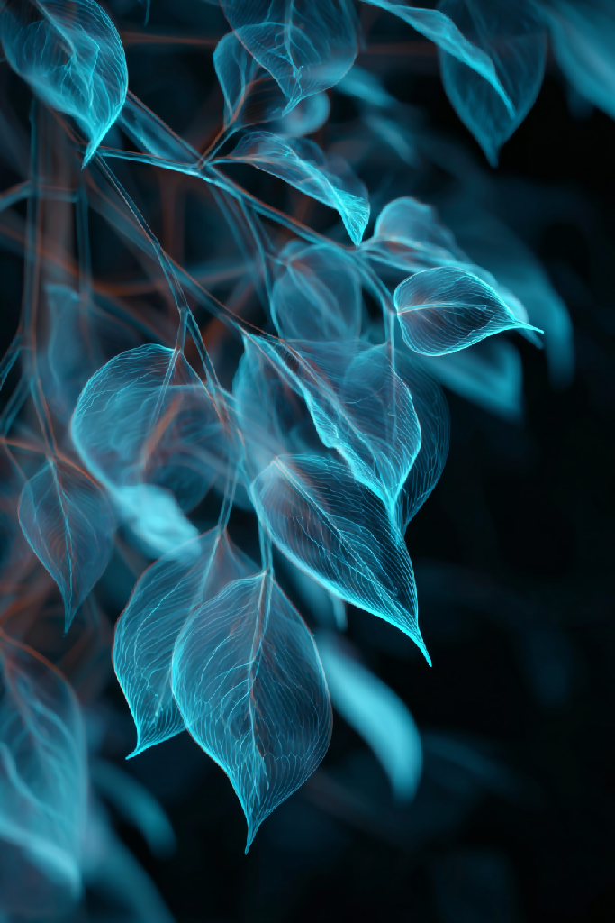 A poetic exploration of organic translucence and ethereal illumination, Whispers of Light captures the delicate interplay between nature and energy. Each composition reveals botanical forms rendered in glowing gradients and spectral textures, evoking a sense of quiet reverence and futuristic elegance. The series invites viewers to contemplate the unseen frequencies of life, where leaves become conduits of light and emotion.