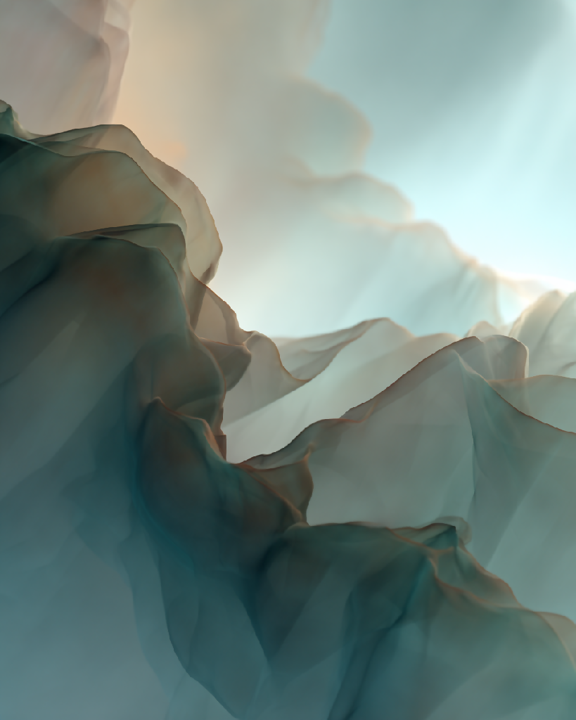 Tags: abstract, surreal, ethereal, digital art, generative, dreamlike, mist, folds, light, atmospheric, fluid motion, soft tones, contemporary