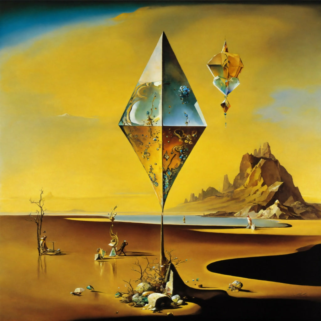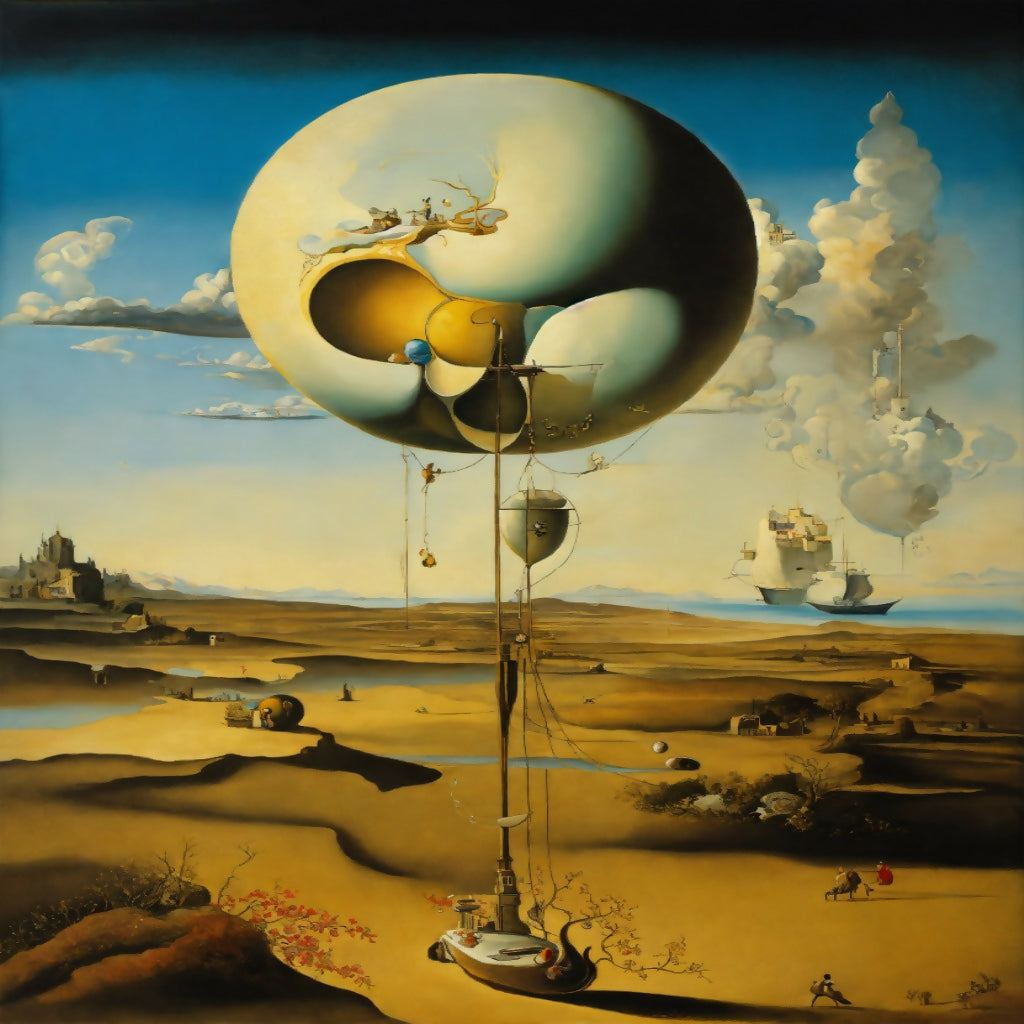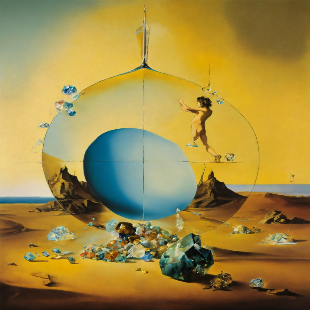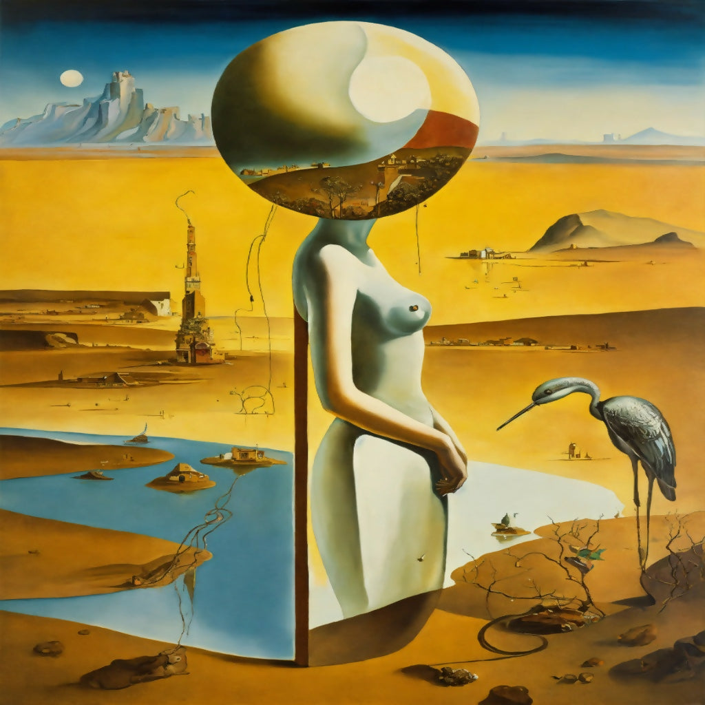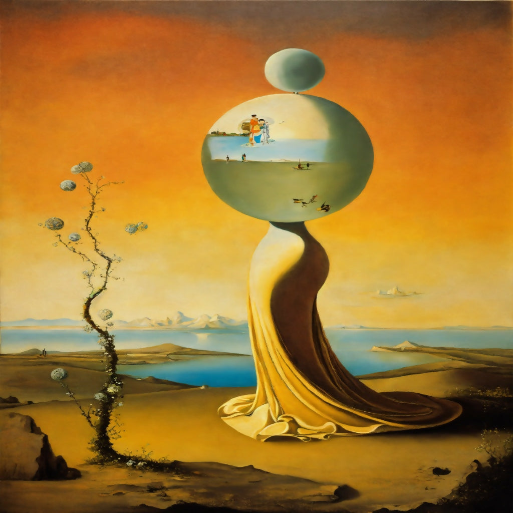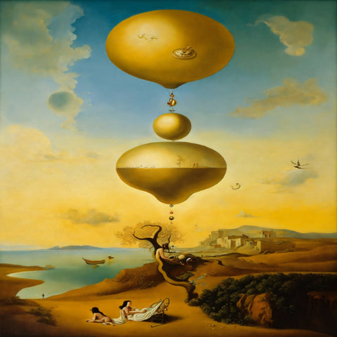 Every element in the painting seems to exist in a suspended moment, where tenderness is both a fragile, fleeting presence and an eternal force that shapes the surreal world.