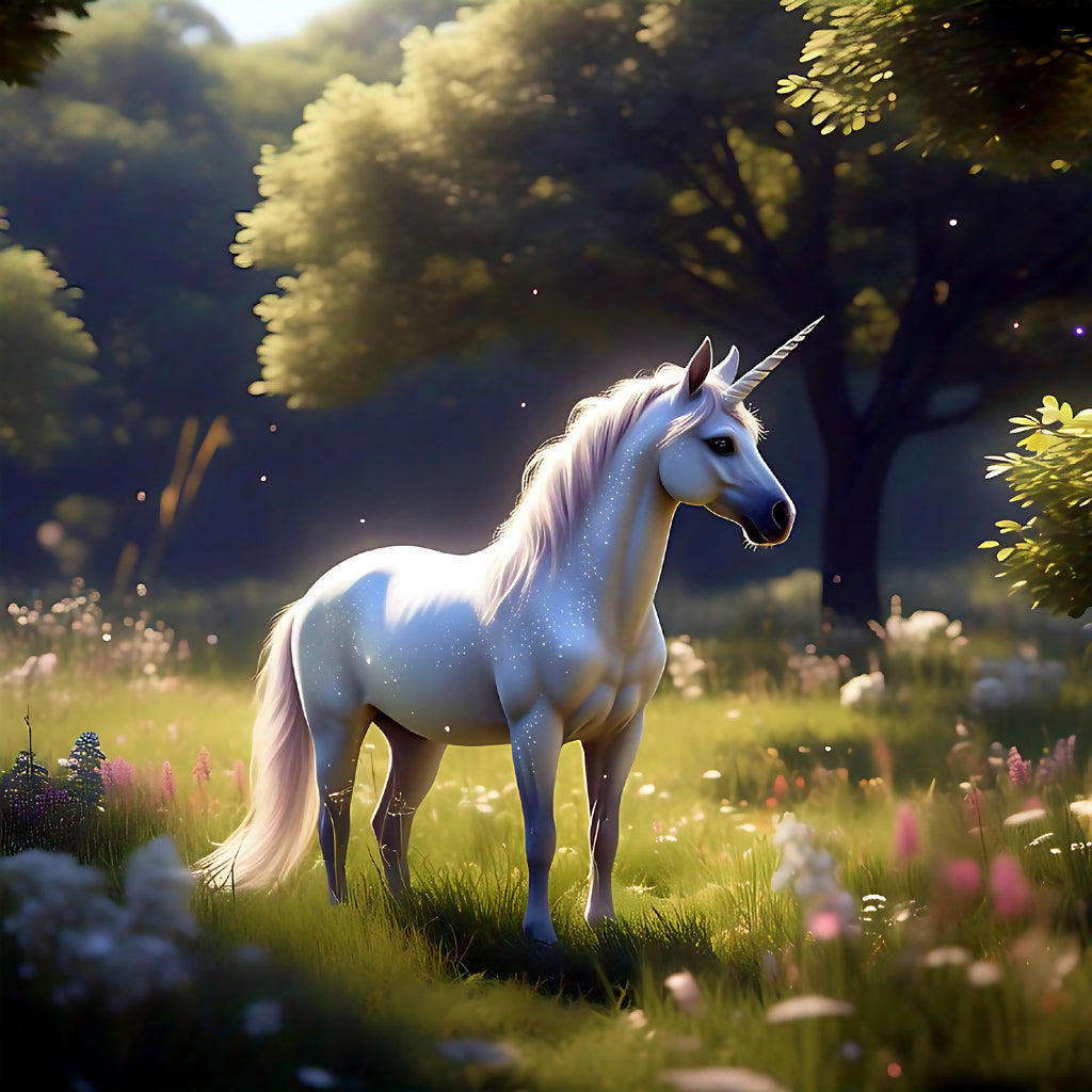 Legend says this meadow blooms only once every hundred years—when the unicorn returns to bless the land with serenity and hope. This artwork evokes a sense of peace, wonder, and timeless beauty, perfect for dreamers and collectors alike.