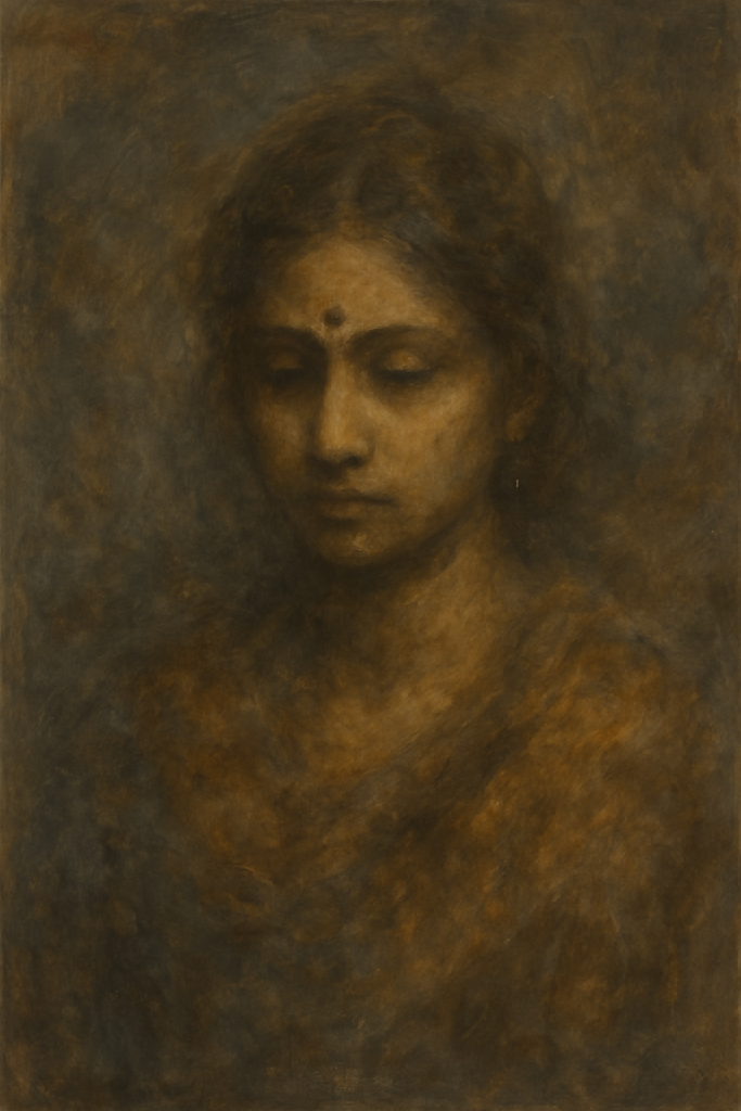 “Whispers Within” – Abstract Portrait of an Indian Woman | Oil-Style Digital Painting