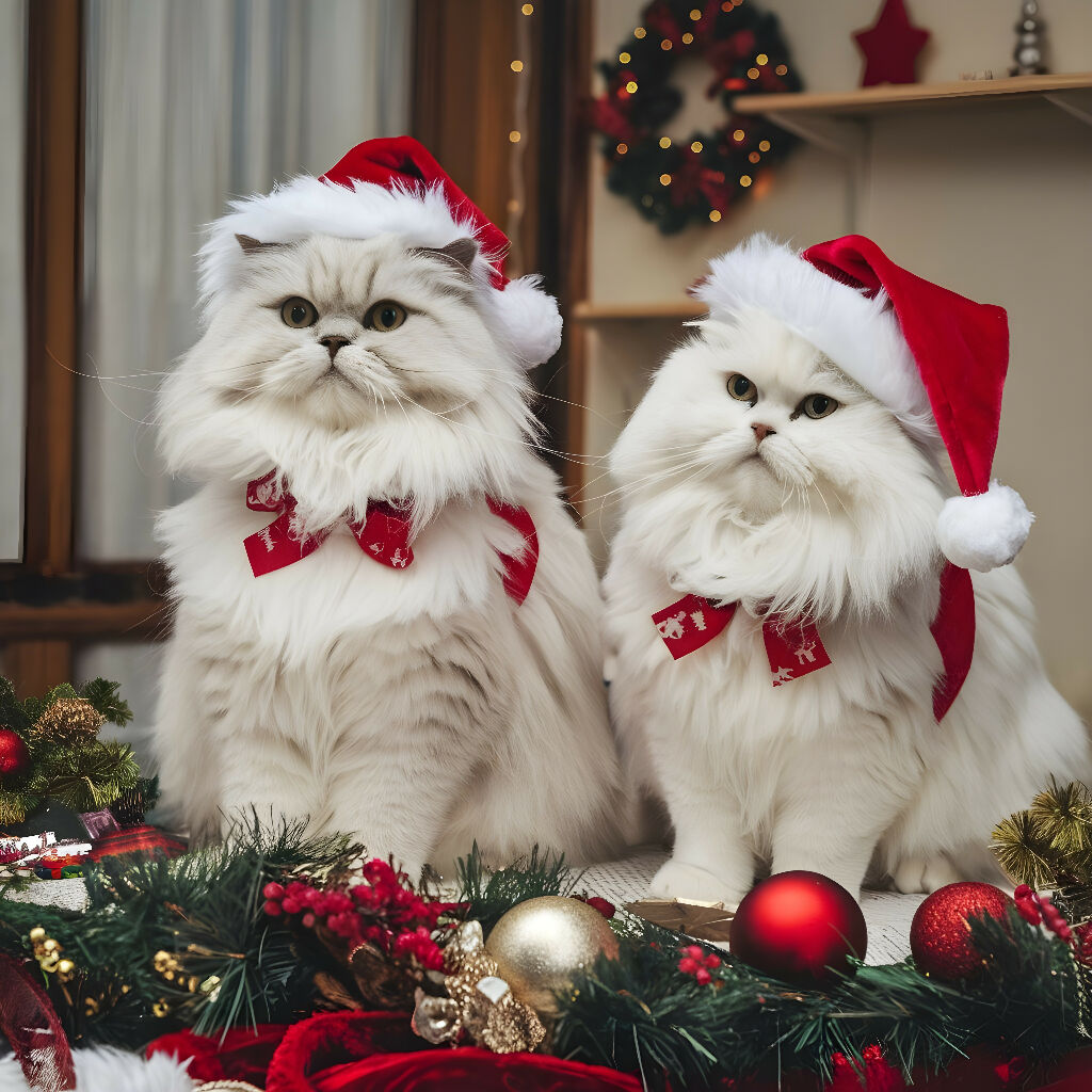 Get ready to experience the magic of Christmas with a delightful twist! Picture a charming white cat in a festive Santa Claus dress, posing next to a beautifully decorated white Christmas tree. This heartwarming scene embodies the joy of the season, complete with the sparkle of holiday cheer. Perfect for lovers of cats, Christmas songs like 'Santa Baby,' and all things merry, this adorable moment captures the spirit of Santa hugging kittens and cozy cat naps on Santa's lap.