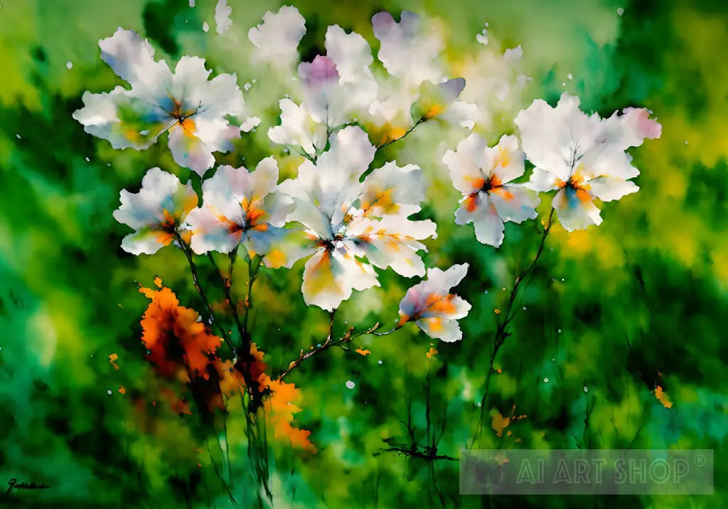 صوره اصليه معاصره للذكاء الاصطناعي تجريدية للطبيعه والزهور البيضاء