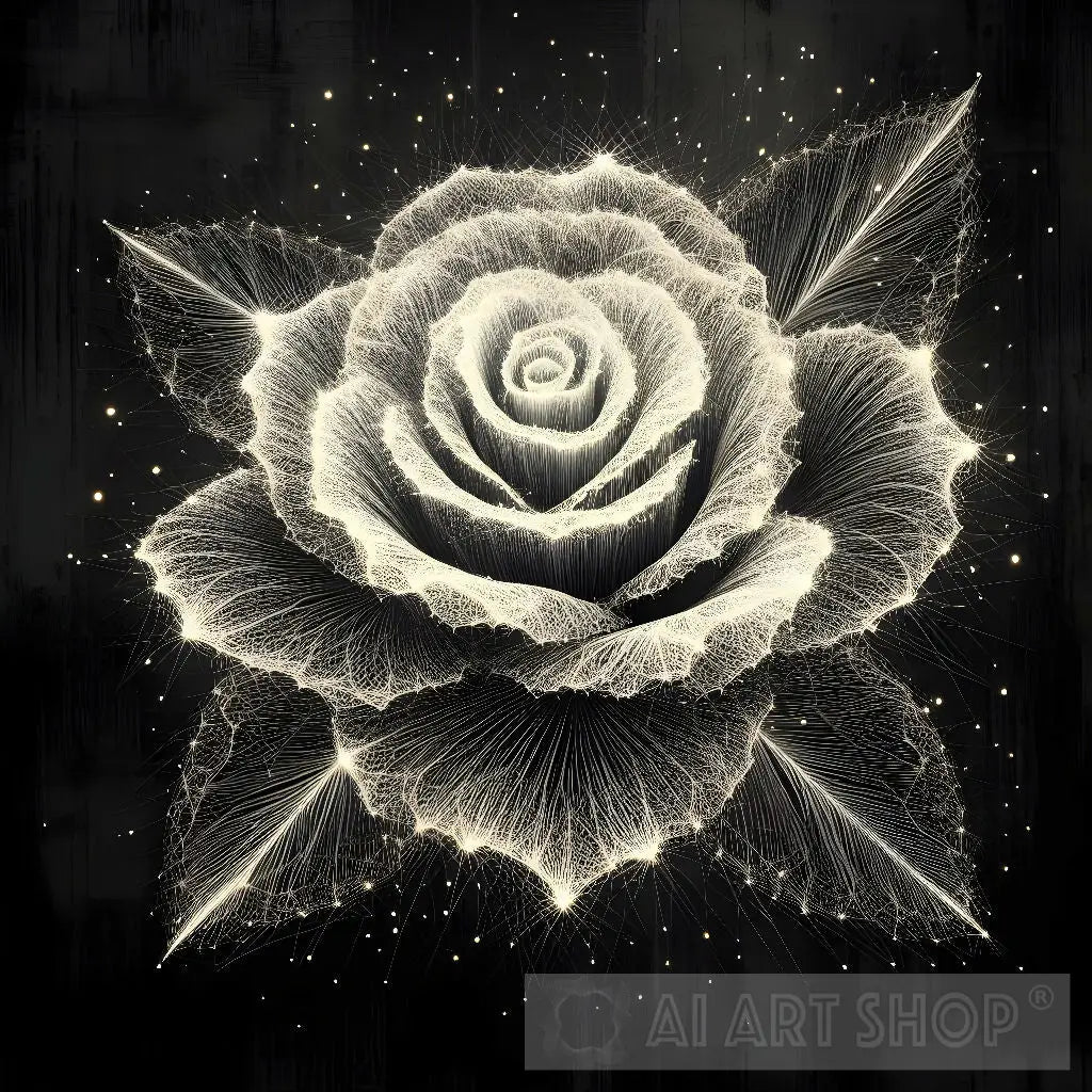 This captivating wall art features a delicate white rose set against a striking black background. The contrast between the purity of the rose and the depth of the black creates a powerful visual impact, drawing the viewer's attention and evoking a sense of mystery and intrigue. The intricate details of the rose petals are rendered with exquisite precision, adding a sense of realism and depth to the composition. Perfect for adding elegance and sophistication to any space, this piece is sure to inspire admiration and conversation.