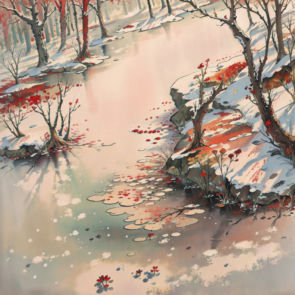Winter Forest with Rubies is a 100% original AI painting, created to be sold at the AI Art Shop.