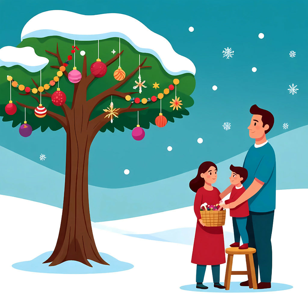 Winter Tree of Togetherness is a heartwarming AI-generated artwork that captures the joy of family bonding during the holiday season. A mother, father, and child gather beneath falling snowflakes to decorate a tree with colorful ornaments, stars, and garlands. The snowy branches sparkle with festive charm, while the family’s laughter and teamwork bring warmth to the cold winter night. This piece tells a timeless story of love, unity, and celebration—reminding us that the true magic of the season lies in shared moments and cherished traditions.