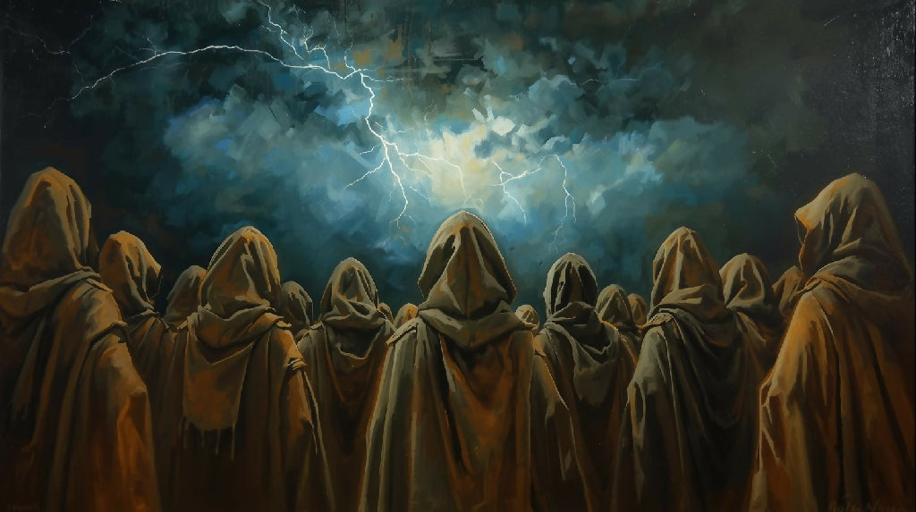 Creepy painting of Witches and Warlocks at some sort of ceremony.