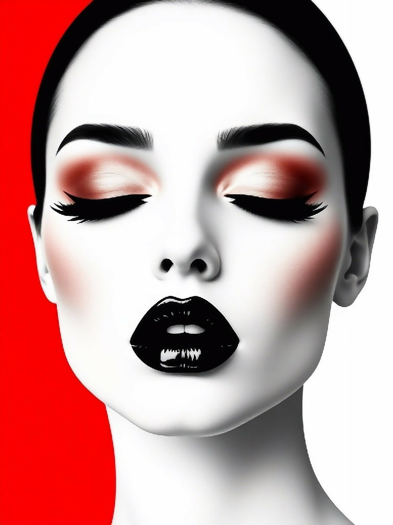 A striking black and white illustration of a woman's portrait showing the face of a woman with her eyes closed. The gentle contours of her face are clear and expressive, with the light and shadow effects accentuating the fine details of her features. Her lips are shaped in a gentle, relaxed smile, which gives a peaceful and thoughtful mood. This depiction in black and white conveys a timeless elegance and invites the viewer to explore the emotions and thoughts behind the closed gaze. It is an image that exudes both beauty and depth, celebrating the power of silence and inner peace.