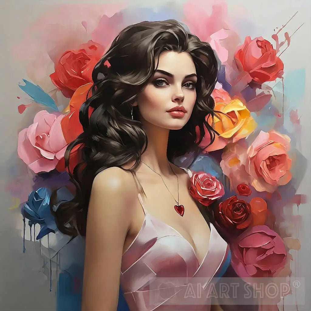"Elegance meets romance in this captivating image featuring a woman with roses. The graceful pose and the soft, natural lighting enhance the beauty of the moment as she holds a bouquet of vibrant roses. Each delicate petal and the subtle expression on her face tell a story of love and admiration.