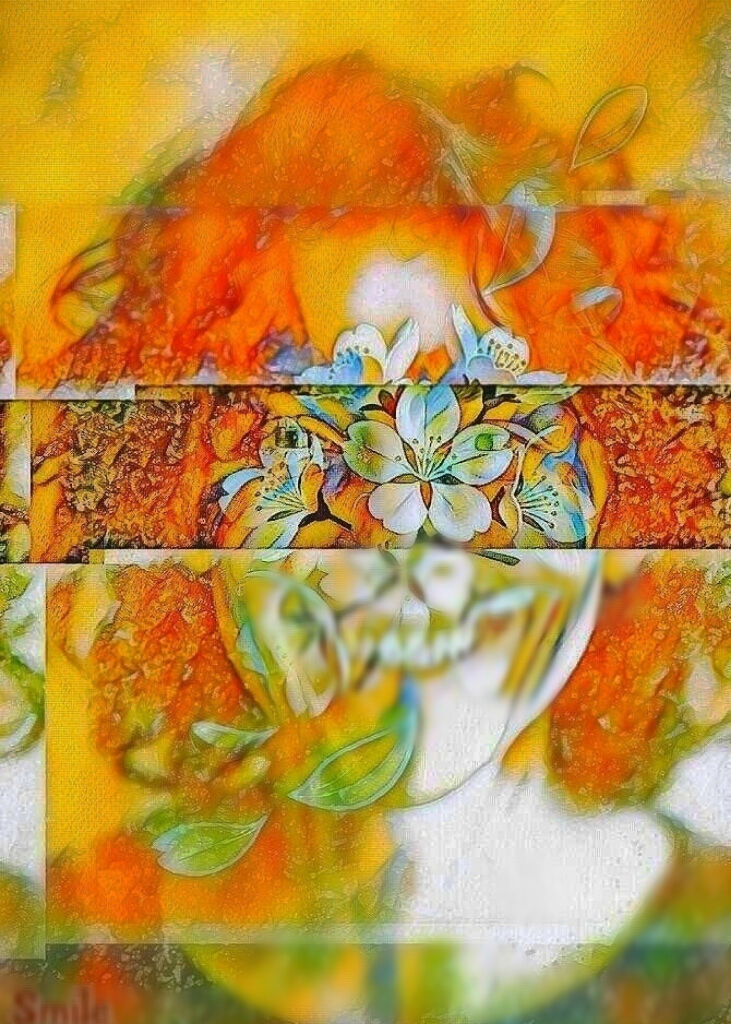 "एक महिला की मुस्कान प्रकृति की खुशी का प्रतीक है - एक ऐसा क्षण जिसे एआई कला हर रंग में कैद करना पसंद करती है।"