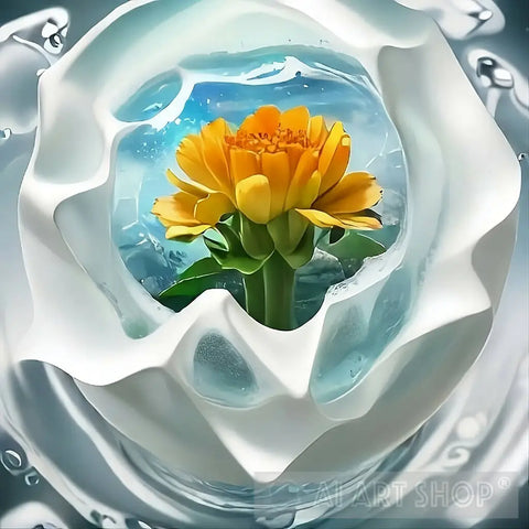 In a dream's embrace, a yellow flower whispers tales of ethereal beauty on this art wall. Petals dance in reverie, a surreal bloom in the garden of imagination, enchanting and timeless.