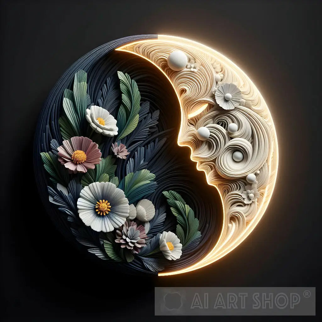 The wall painting depicts the Yin and Yang symbol, representing the dualistic concept of balance and harmony in Chinese philosophy. The contrasting black and white swirls symbolize the interdependence and interconnectedness of opposing forces. The Yin, characterized by darkness and femininity, is complemented by the Yang, symbolizing light and masculinity. Together, they embody the harmony found in the balance of opposites.