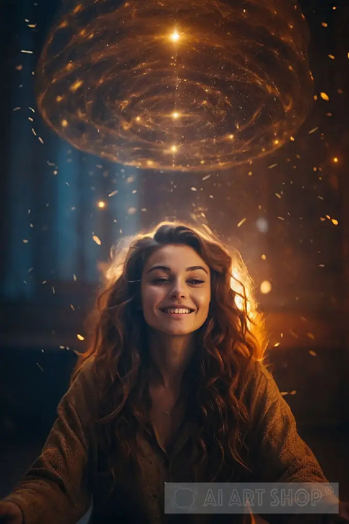 Young beautiful woman got an epiphany after a mind blowing counseling session. Happy face, relief, enlightenment.