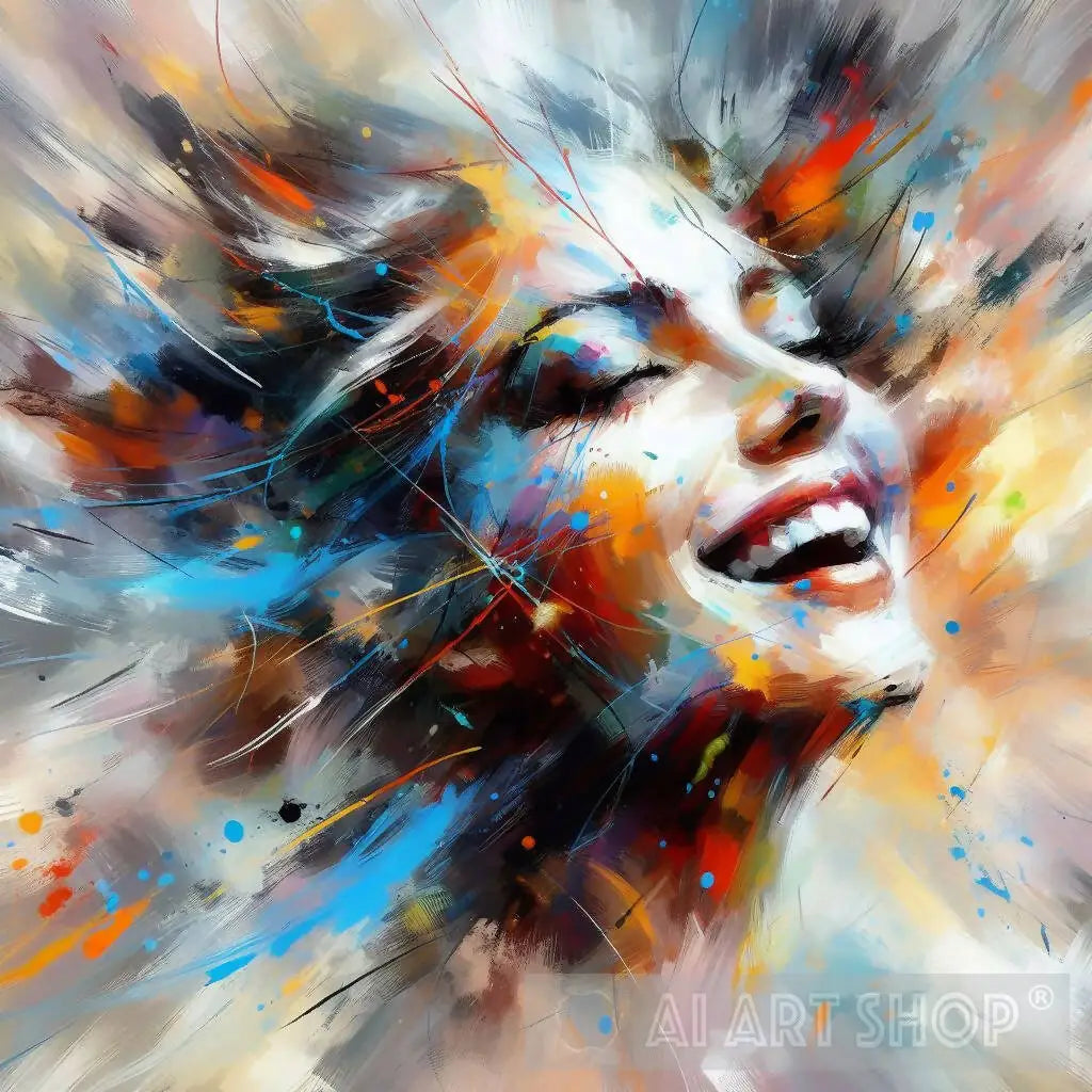 An painting of a young lady, with strong color splashes and brushstrokes that encapsulate happiness and joy.