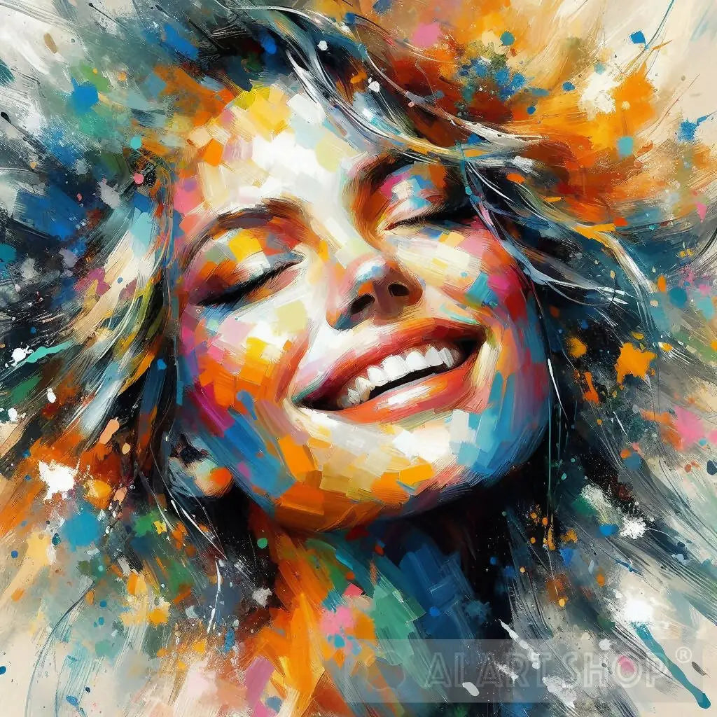An painting of a young lady, with strong color splashes and brushstrokes that encapsulate happiness and joy.