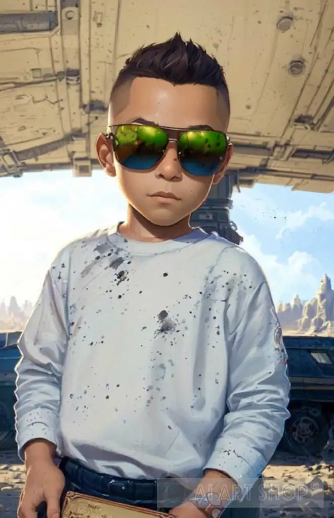 “Young One in 2053” is an AI generated image of a young boy who lives in the year 2053, surviving a war between humans and AI. The series “Young One in 2053” includes 6 AI generated art pieces who I like to call “brothers”. Each art piece is a different frame from this AI Art work. I hope you can own a piece of this line as it is the first edition of many to come.